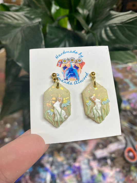 Meadow Bunnies - Handmade Polymer Clay Earrings