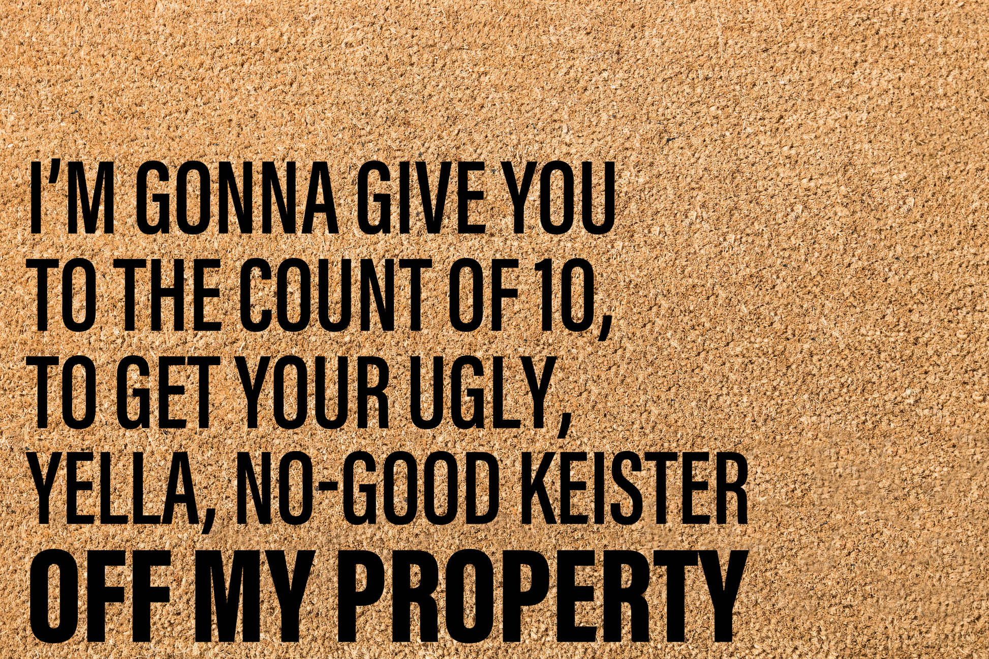 I'm gonna give you to the count of 10, to get your ugly, yella, no-good keister off my property