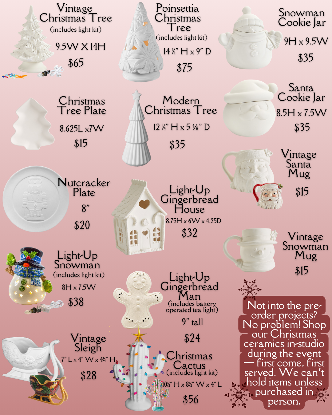 📦 All ceramics will be fired and ready for pickup by December 5th, just in time for holiday gifting (or keeping — we fully support treating yourself).