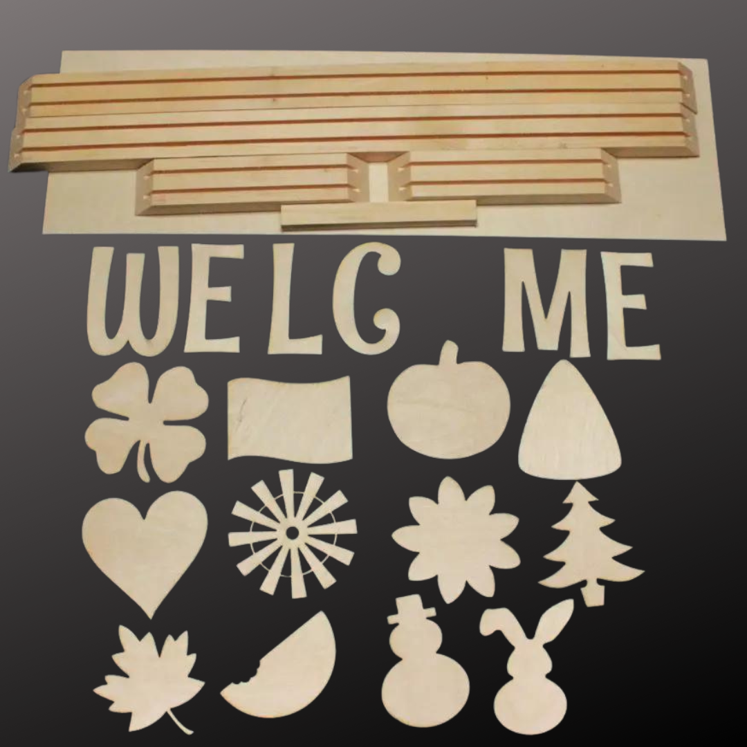 12 - 4" Interchangeables (heart, 4 leaf shamrock, flag, pumpkin, candy corn, windmill, sunflower, Christmas tree, maple leaf, watermelon with bite, snowman with hat and flop ear bunny).